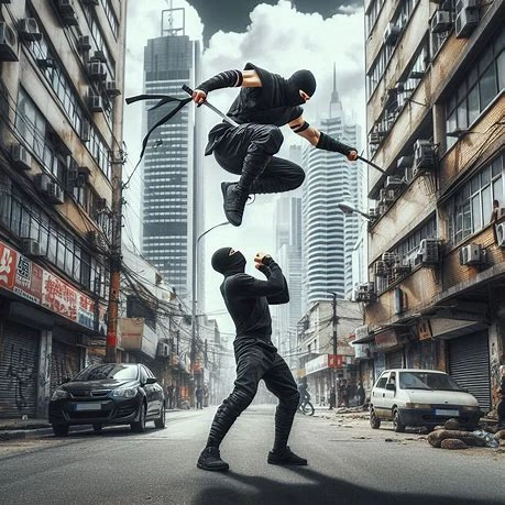 Sometimes, even Ninja get an attack of conscience and defect from their clan, either going Ronin or becoming a Vigilante. Such Ninja typically remain mysterious and secretive, for reasons only a Ninja can truly understand. Many retain a sense of loyalty to their old clan. Even Ninja who remain with their clan sometimes happen to being sent on missions that pit them against the forces of evil. A Ninja could be sent on any mission, and Ninja instructed to strike against the Five Venoms, Laughing Devils, Maniac Warrior Empire, or Wushu may well want to make common cause with local Ronin, Vigilantes or Wing Chun faction allies. Ninja missions often make no sense to outsiders, which means that Ninja can easily be up to anything. If acting on clan orders, Ninja agents themselves may not understand the point of what they are doing.